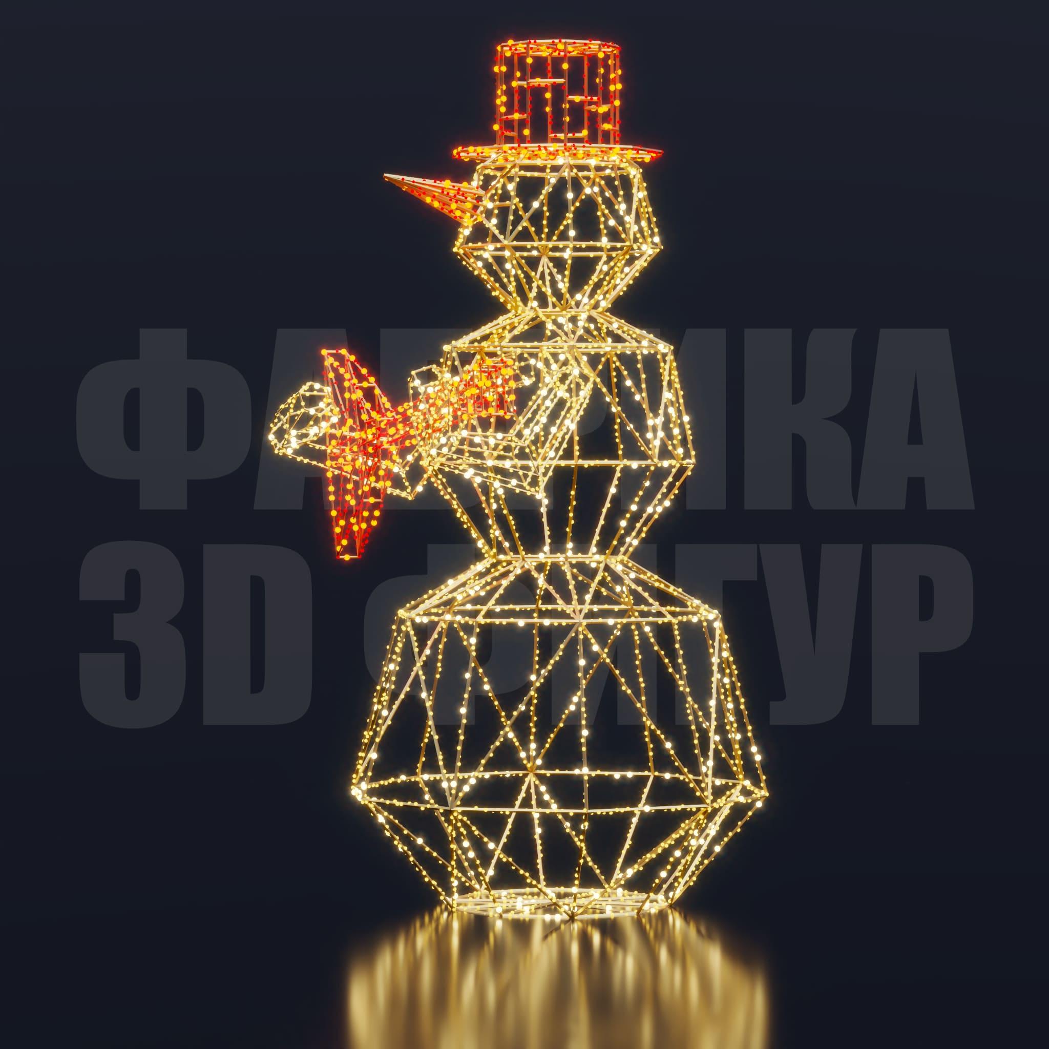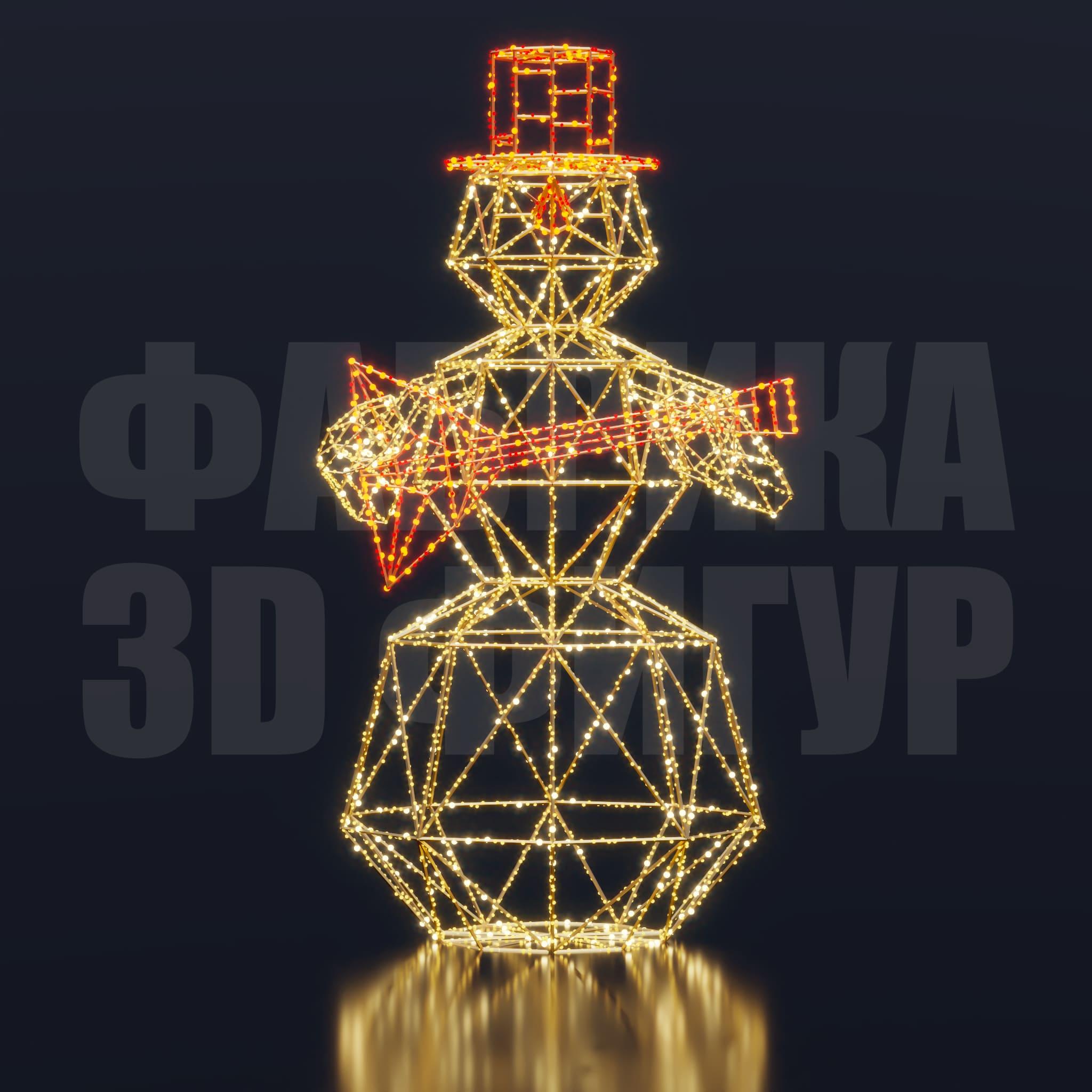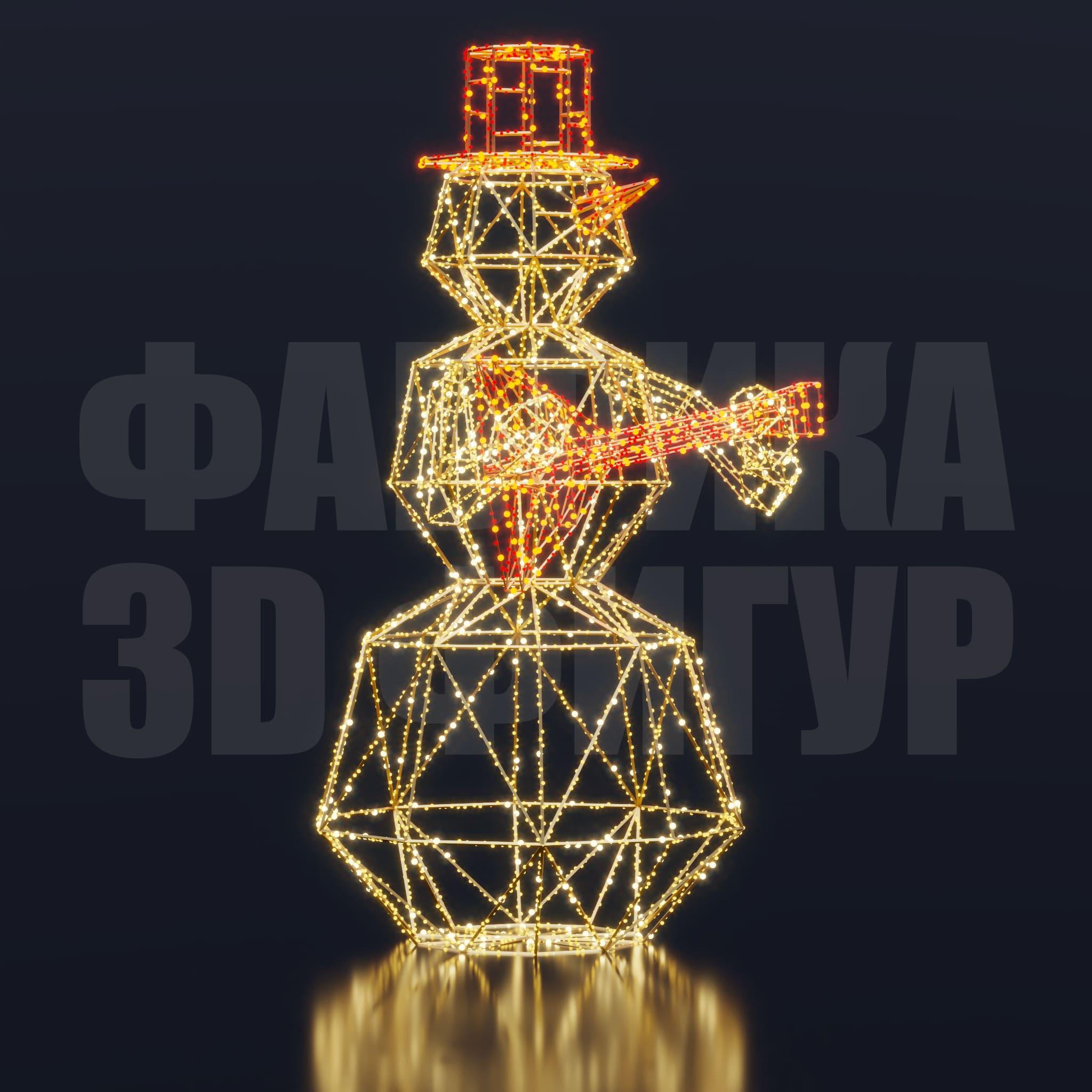 Композиция объединяет атмосферу русского культурного колорита и актуальный дизайн световых арт-объектов. Фигура гармонично вписывается в городское праздничное оформление, наполняя пространство теплом, динамикой и ощущением живого новогоднего настроения. «Снеговик с балалайкой» становится привлекательной визуальной точкой для фотозон и запоминающимся элементом зимних декораций в парках, скверах и общественных пространствах.